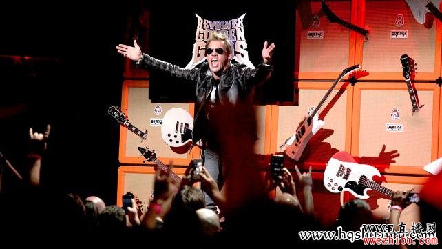 两者都是高强度的娱乐形式,很依赖观众,都是很有侵略性很能令人兴奋的。当你现场表演的时候,你从观众这里得到的反馈能让你更好的去发挥,不管是在Fozzy乐队的演出上还是在WWE的演出上都是一样。如果观众能够投入,那效果真的会好很多的。两者是有很大的共同点的,但就像我说的,摇滚乐就像是一个帮派,如果你喜欢摇滚乐,你就加入了这个帮派,因为在很大程度上可能你身边的不少人都不喜欢这些东西。现在音乐节和巡演什么的越来越多了,乐队也能通过这样的方式赚钱,而且现在也有更多的人愿意来看摇滚乐的巡演,对他们喜欢的乐队表示支持了。