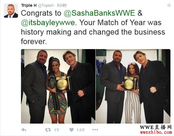 HHH在微博推特上发出了他和NXT总经理William Regal同各个奖项获胜者的合影,如下所示: