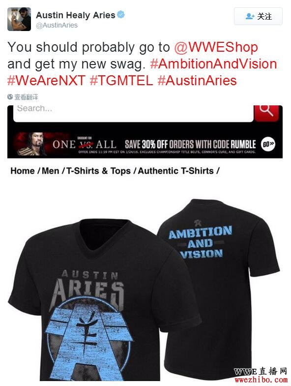 或许你现在应该去WWE官方网店看看我的新T恤了,#AmbitionAndVision(野心和远见)
