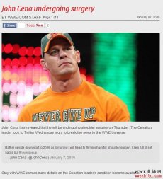 - WWE头牌巨星约翰·塞纳手术进展如何?
